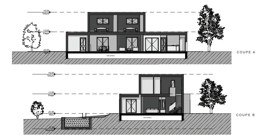 Chiffrage estimatif pour : Fondations et normes standards. Construction en bloc coffrant isolant (RT 2020). Finitions haut de gamme. Le prix "auto-construction" inclut uniquement le coût des matériaux de construction. Il n'inclut pas la main d'oeuvre, piscine, jardin et clôture.